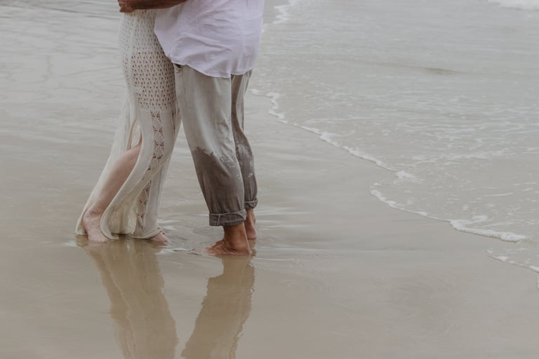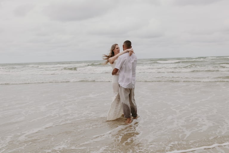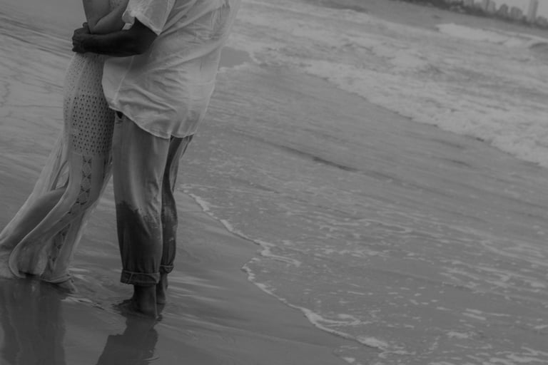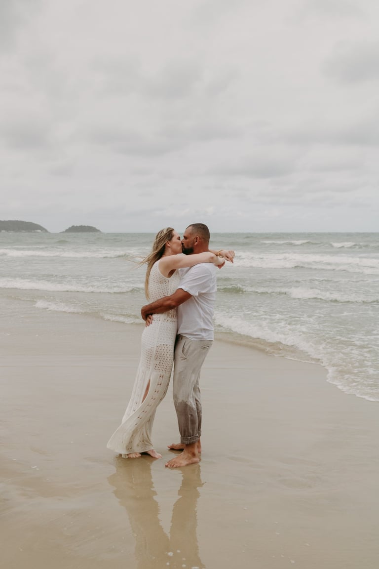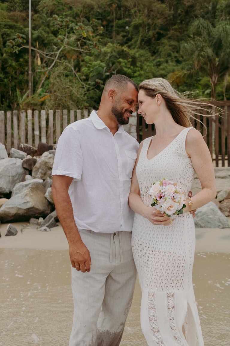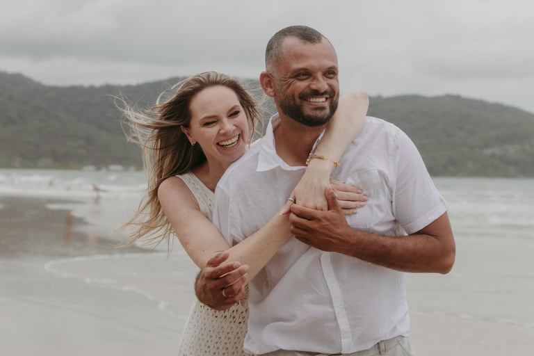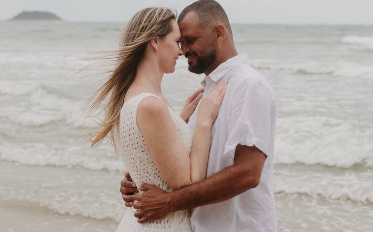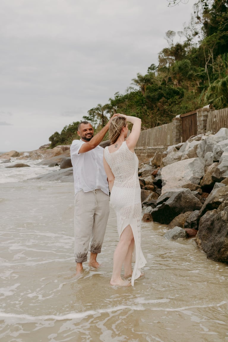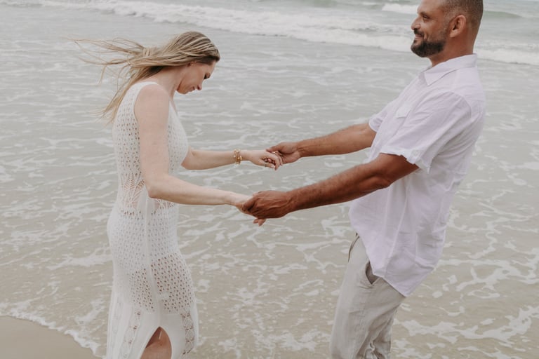Esse casal escolheu a praia para viver momentos importantes da sua história, do pedido de noivado ao pré-wedding. O ensaio foi marcado pela leveza do lugar, pela tranquilidade dela e pelo jeito brincalhão dele, resultando em registros naturais e cheios de conexão.
