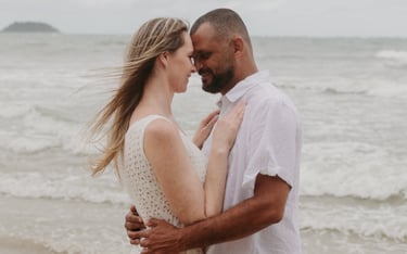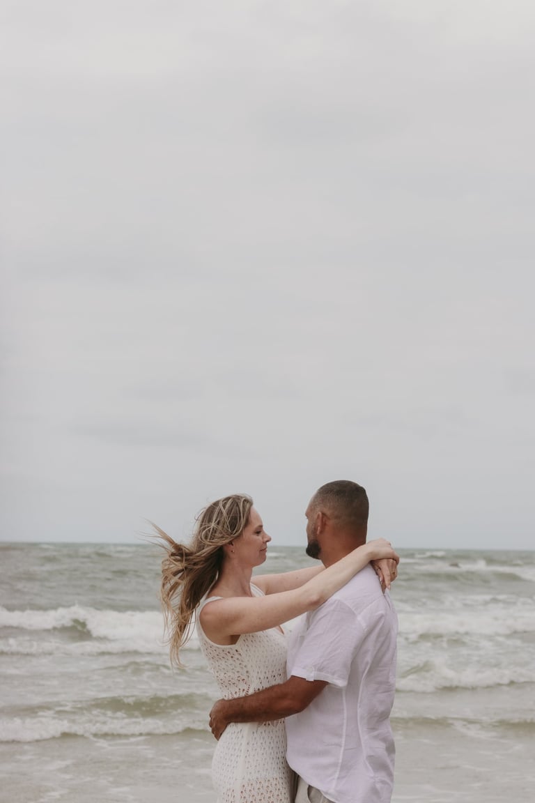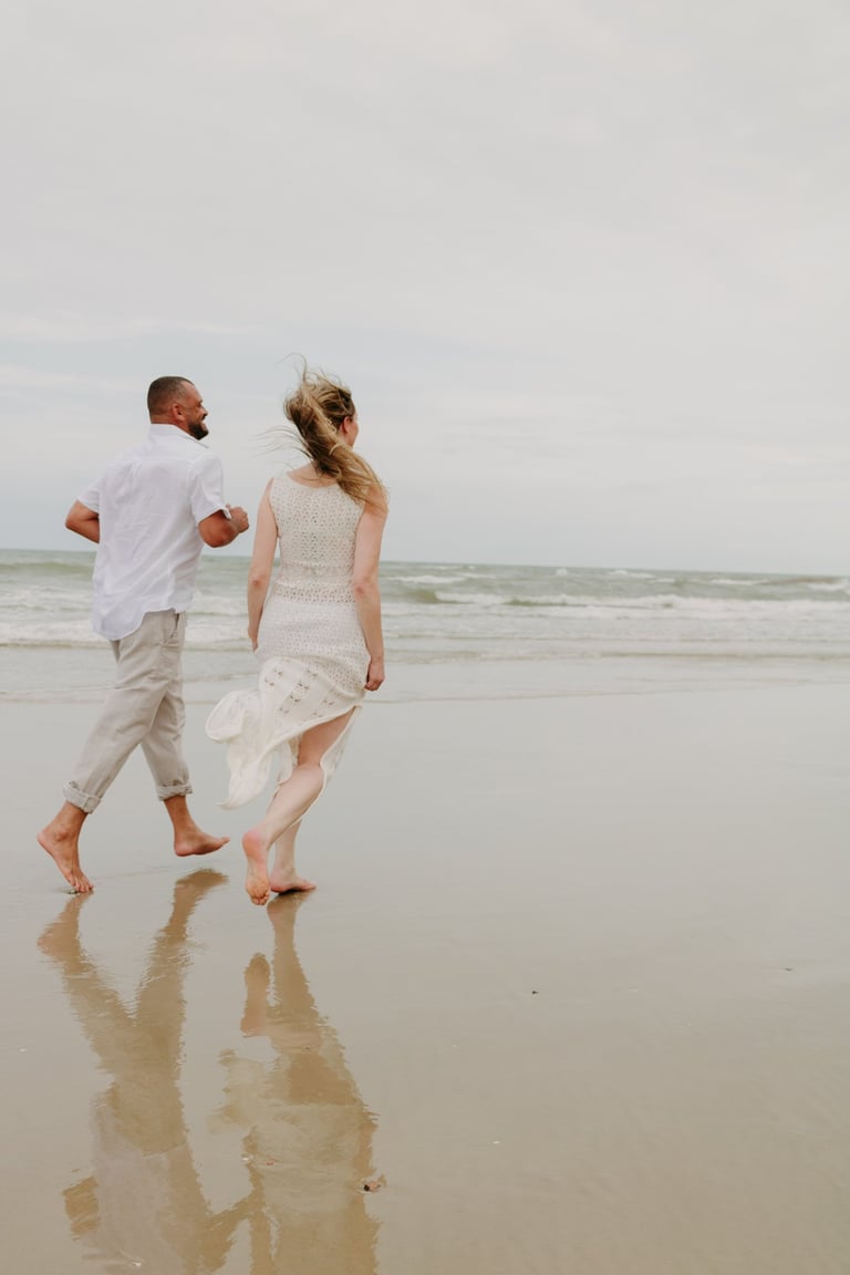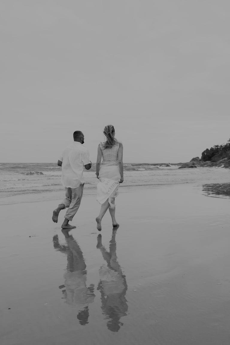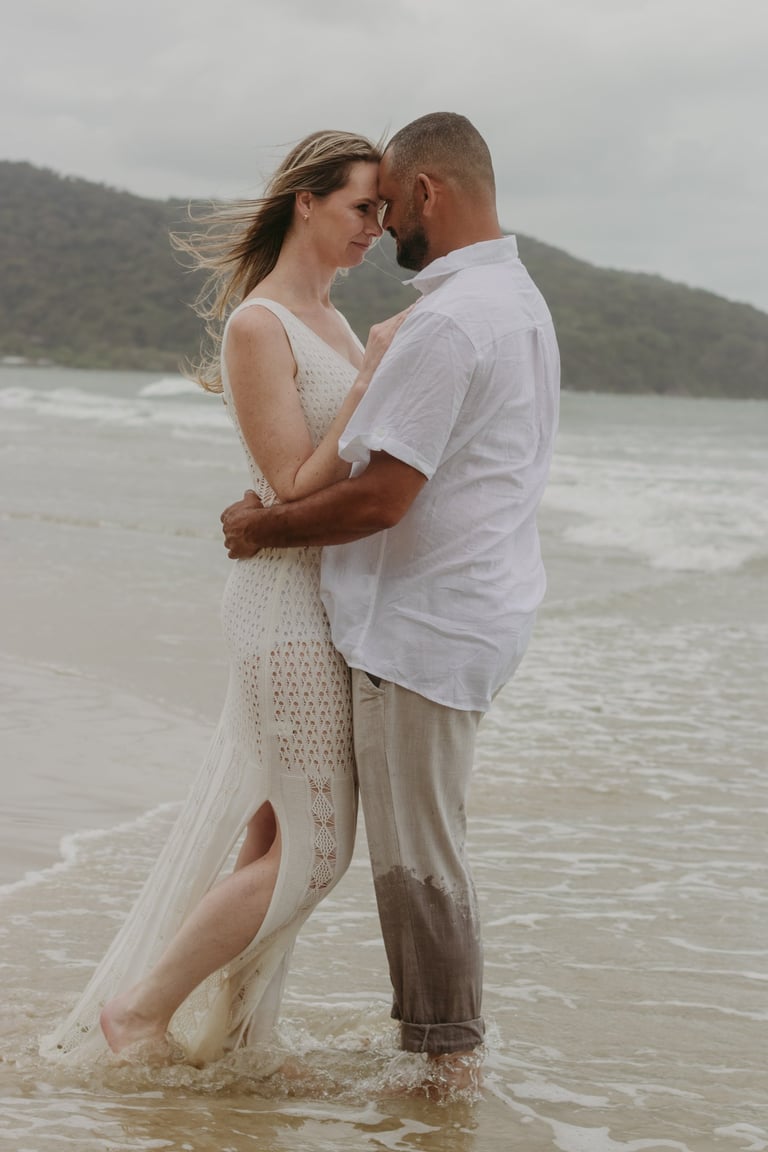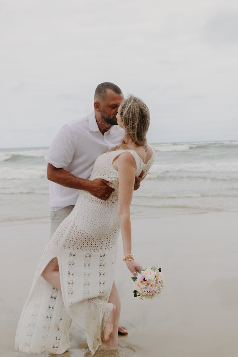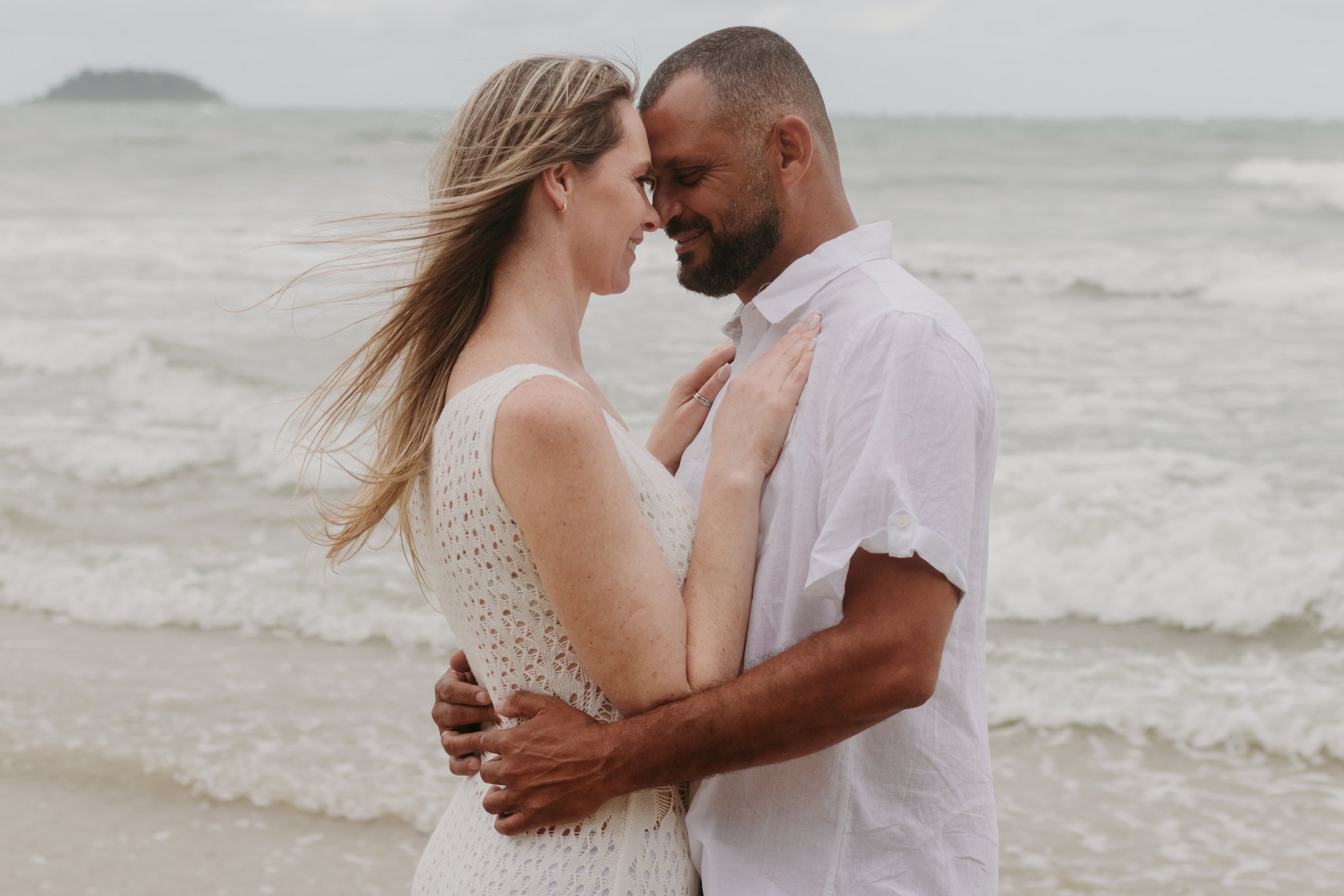 Esse casal escolheu a praia para viver momentos importantes da sua história, do pedido de noivado ao pré-wedding. O ensaio foi marcado pela leveza do lugar, pela tranquilidade dela e pelo jeito brincalhão dele, resultando em registros naturais e cheios de conexão.
